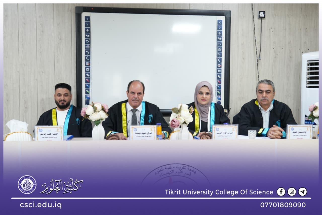 نوقشت في كلية العلوم قسم الكيمياء رسالة الماجستير (تحضير بعض المشتقات الميثيمازول ودراسة تأثيرها التثبيطي على انزيم البيروكسيديز المنقى جزئياً من أمصال مرضى فرط نشاط الغدة الدرقية) للباحثة (امنه عبد السلام ايوب)