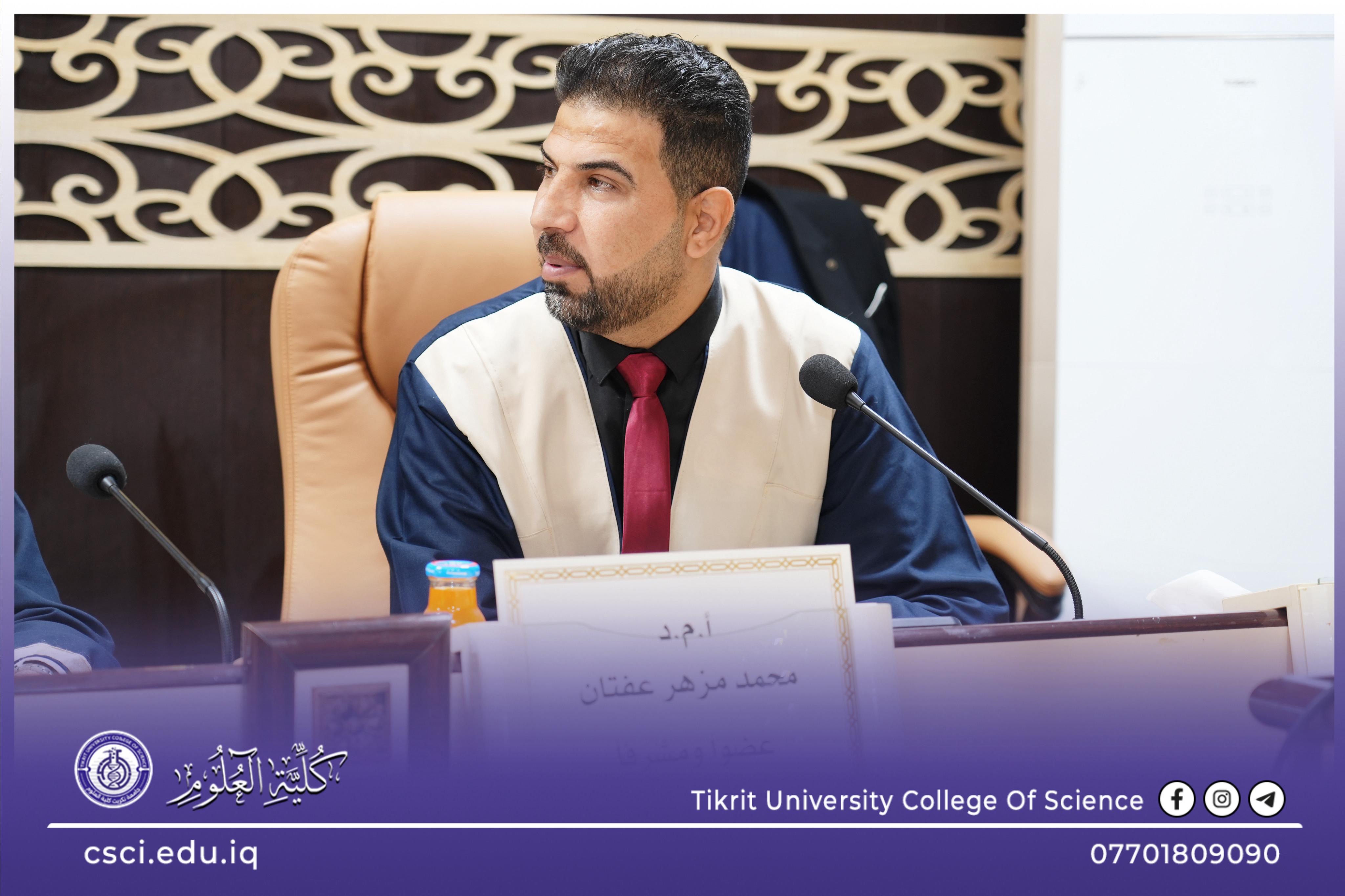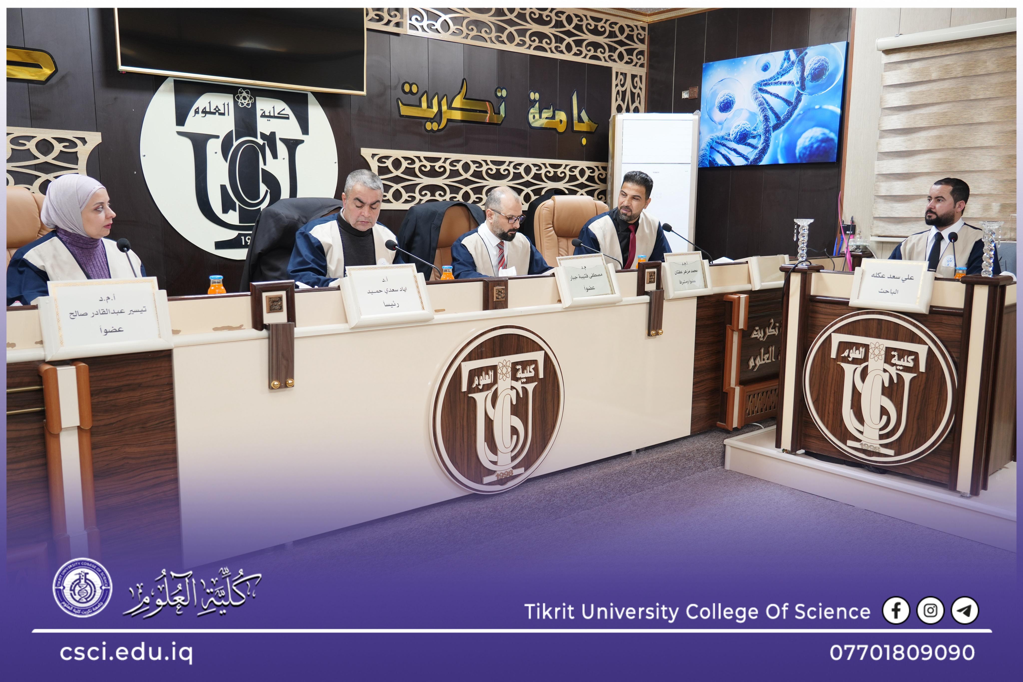 نوقشت في كلية العلوم قسم الكيمياء رسالة الماجستير (تحضير متراكبات بلورية سائلة جديدة وتطبيقها بعمود كرموتوغرافيا لازالة المعادن من الصرف الصحي) للباحث (علي سعد عكله)