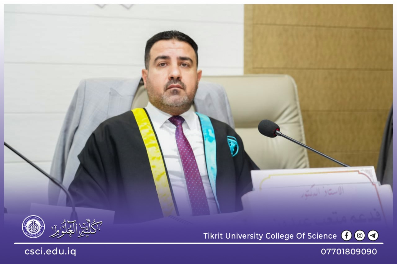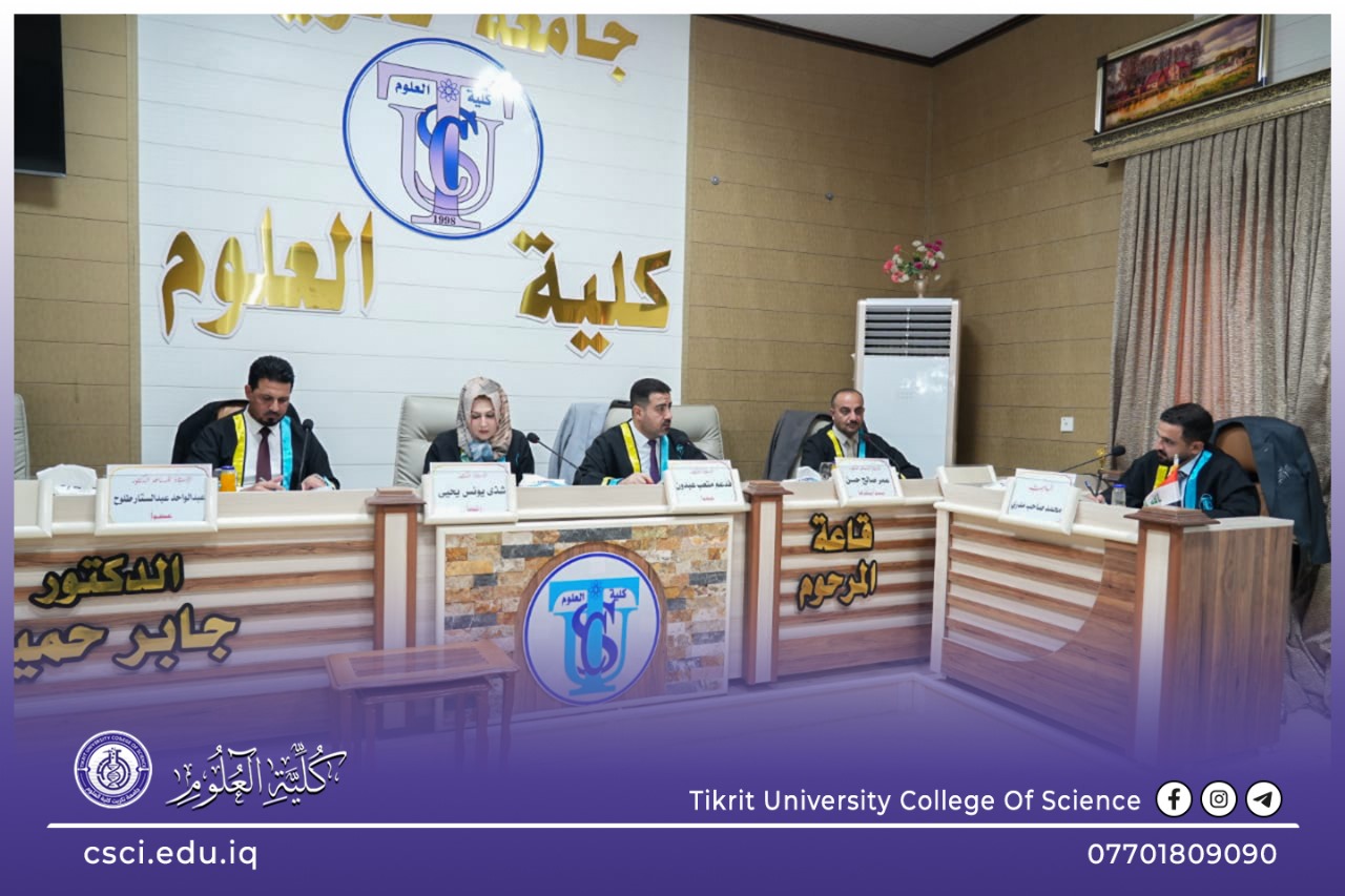 نوقشت في كلية العلوم قسم الكيمياء رسالة الماجستير (تحضير واستخدام كواشف عضوية مبتكرة للتقدير الطيفي لبعض المركبت الدوائية في حالتها النقية ومستحضراتها الصيدلانية) للباحث (محمد صاحب مدري)
