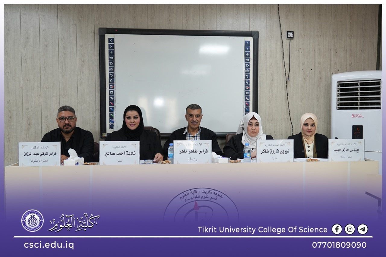 نوقشت في كلية العلوم قسم الكيمياء رسالة الماجستير (تقييم بعض المتغيرات الكيموحيوية لدى مرضى السكري في محافظة السليمانية) للباحث (هفال صباح محمد)