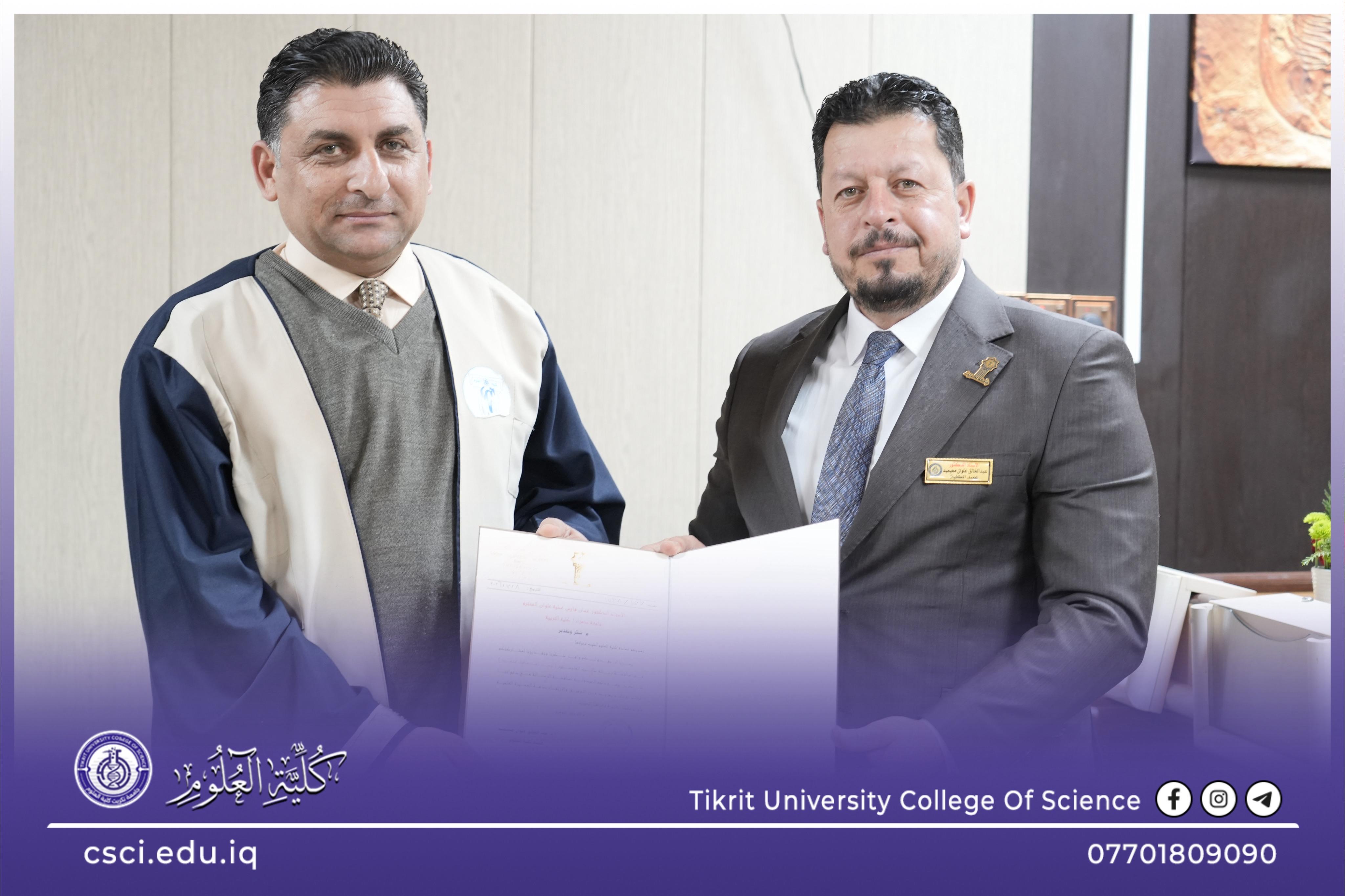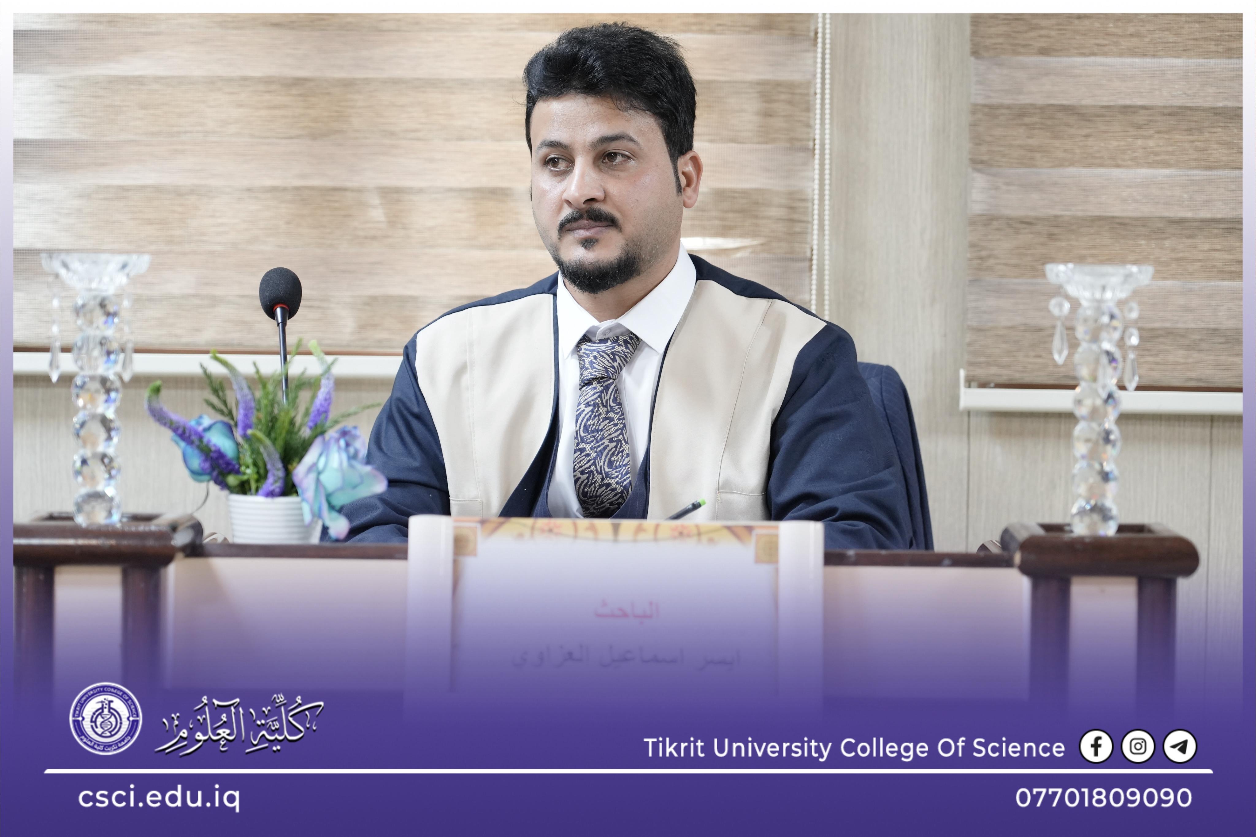 نوقشت في كلية العلوم قسم علوم الحياة رسالة الماجستير (تقييم كفاءة أربع محطات اسالة لتصفية مياه الشربفي قضاء العلم) للباحث (ايسر اسماعيل محمد)