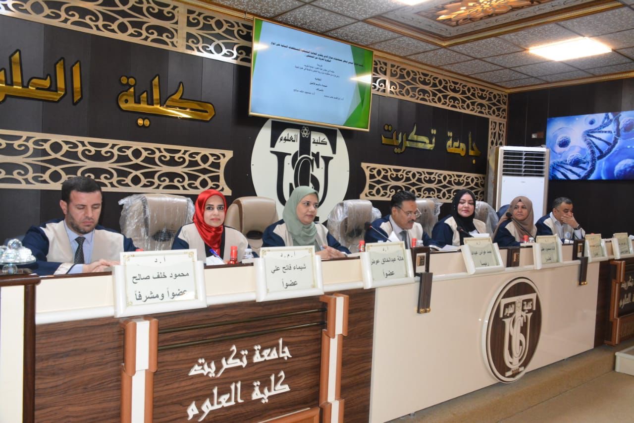 في اطار النهج المستمر لرئيس الجامعة في الحضور الشخصي والفاعل للمناقشات العلمية لإطاريح الدكتوراه ورسائل الماجستير حضر الاستاذ الدكتور وعد محمود رؤوف رئيس جامعة تكريت مناقشة اطروحة دكتوراه ( تقييم الواقع البيئي لبعض مستشفيات صلاح الدين وتقدير الفعالية التثبيطية للمستخلصات النباتية على انواع البكتريا المعزولة من المستشفى ) الموسومة للباحثة (خنساء باسل فاضل) قسم علوم الحياة