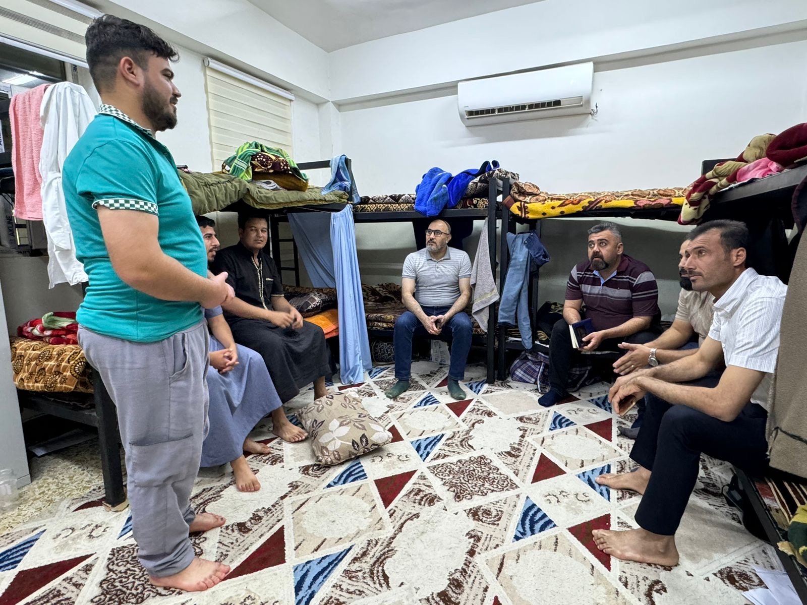 زار كل من أ.م.د.علي حسين الطيف والاستاذ معاون العميد للشؤون الادارية و أ.م.د.فراس فارس رجا معاون العميد للشؤون العلمية و أ.م.د.ايمن عدوان عبد رئيس قسم علوم الحياة في ساعة متأخرة الى الأقسام الداخلية لمجمع الاقسام النموذجي الجديد للاطلاع على الواقع السكني والخدمي والمعيشي لطلبة كلية العلوم الساكنين في الأقسام الداخلية وكيفية ترجمة هذا الواقع إلى أفعال تخدم الطلبة من قبل القائمين عليها.