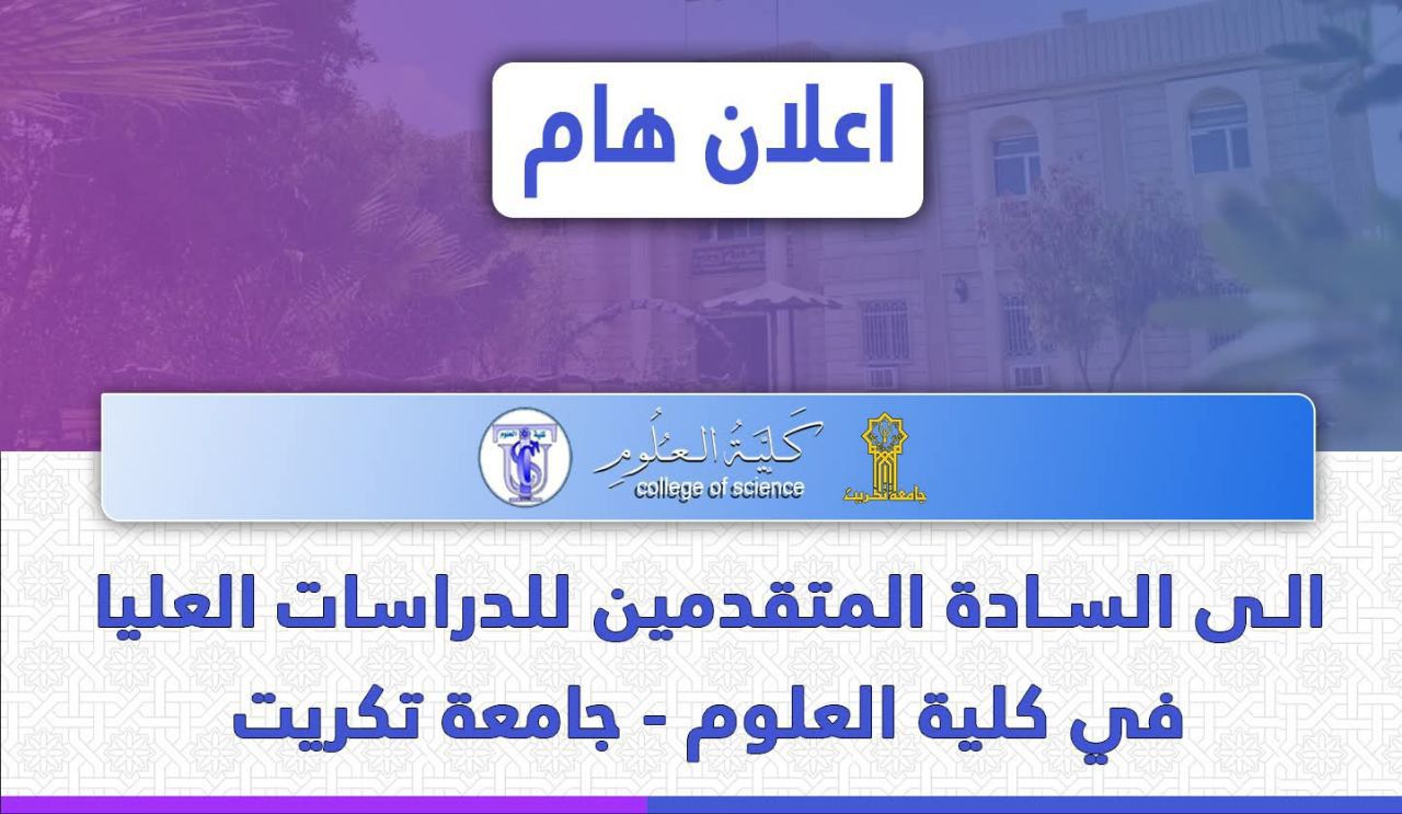 المقال السابق: خارطة جلوس المتقدمين للأمتحان التنافسي للقبول لدراسة (ماجستير + دكتوراه) للعام 2025 - 2026 قسم علوم الحياة
